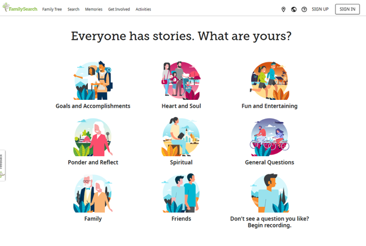 - Visit FamilySearch.org, which offers free family history tools, and select Activities, then Record My Story. Choose one section and answer a single question—or select Create Your Own. Instead of recording your voice, click Type My Response at the bottom of the screen. Type a brief story, print it, and bring it to the program.