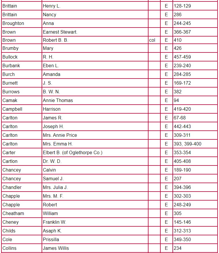 The will books are in the probate judge’s vault at the courthouse in Athens, Georgia. The original wills are also there. This area is accessible during regular business hours. The microfilms [2 reels] of the will books are at the Athens Regional Library Heritage Room and the Georgia State Archives; images are available online at FamilySearch.org. Use the index below to help you find the image you need or use the FamilySearch Georgia Probate Records search page (a link to browse the images is at the bottom of the search page on FamilySearch).