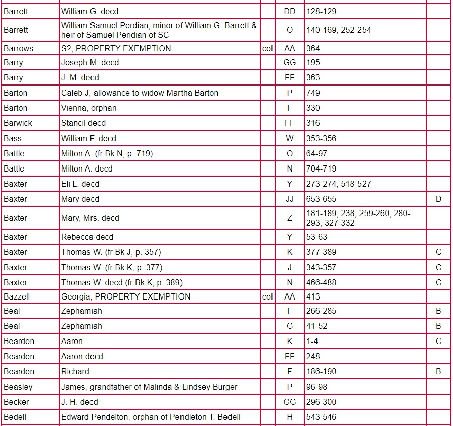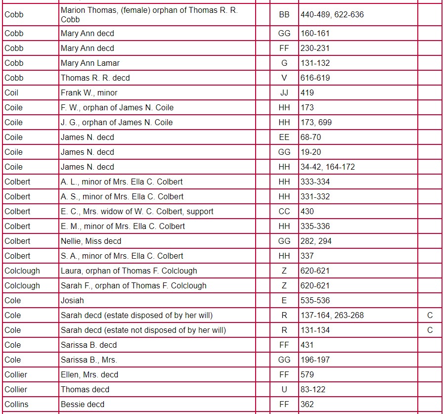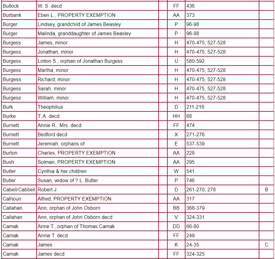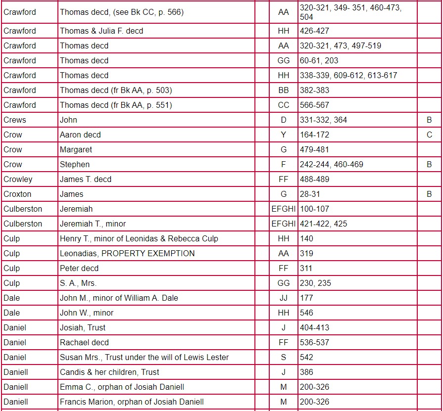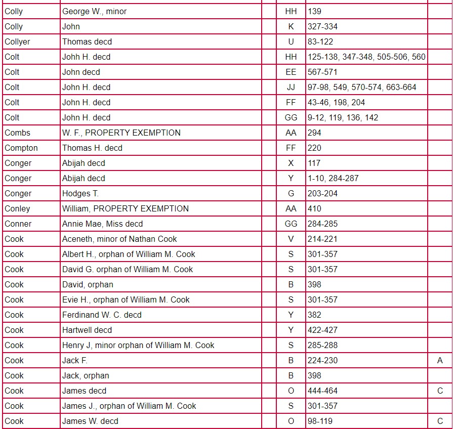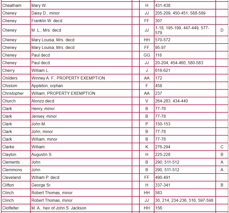 Index of Clarke County Returns and Mixed Records Books ABCD – JJ