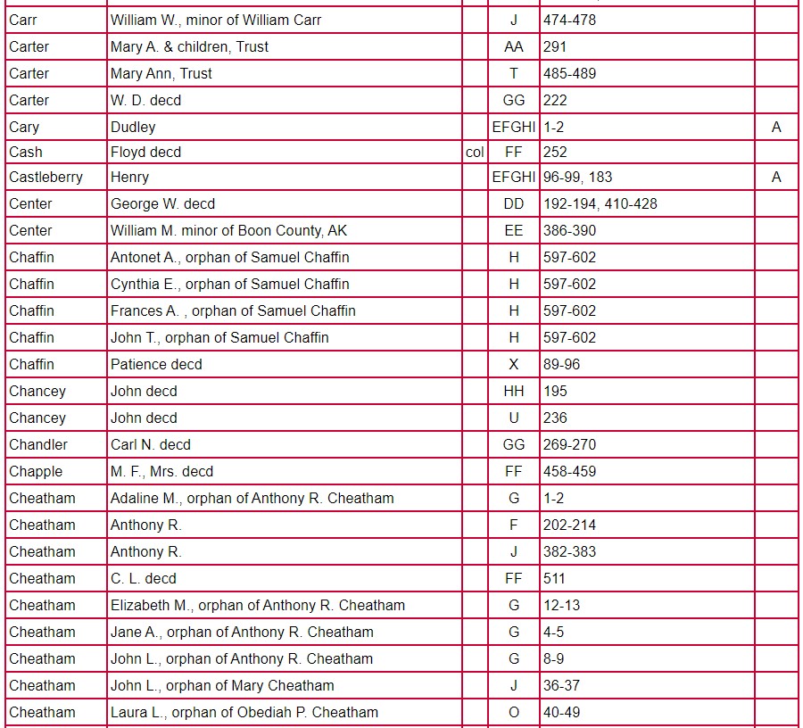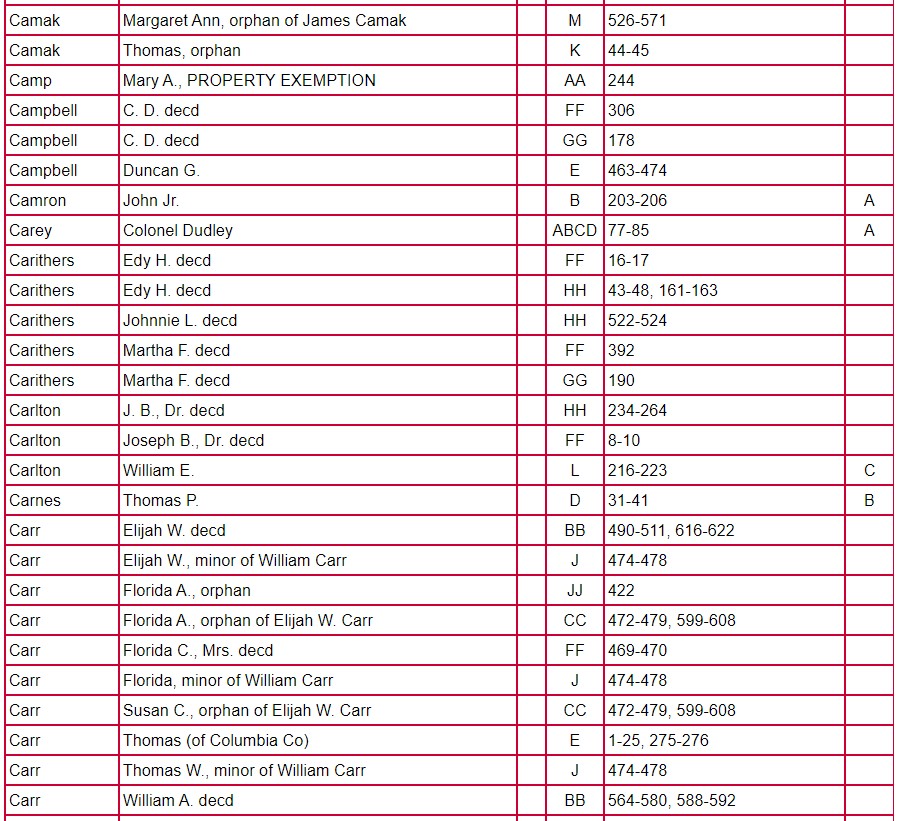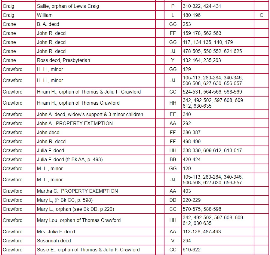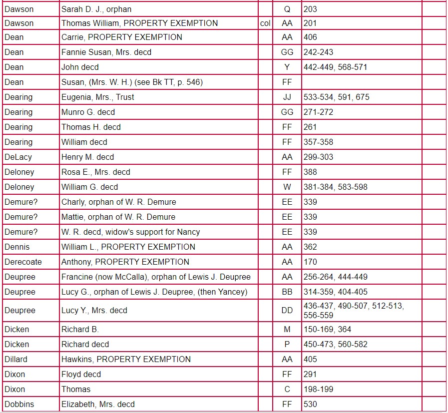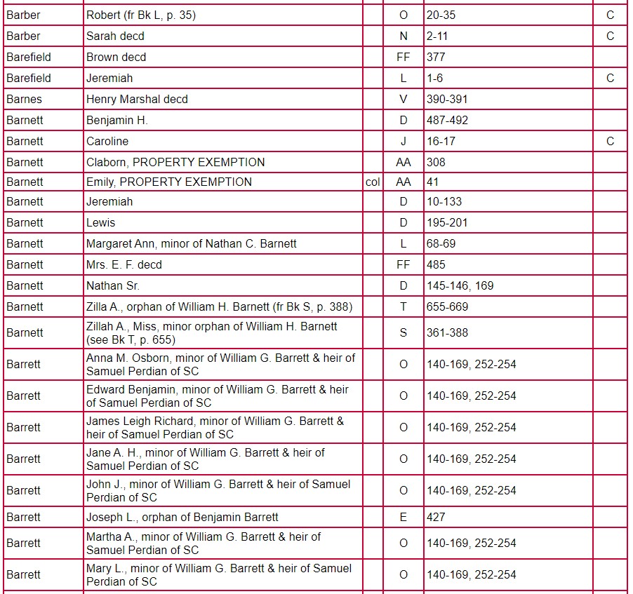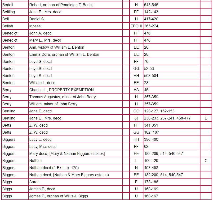 Index of Clarke County Returns and Mixed Records Books ABCD – JJ