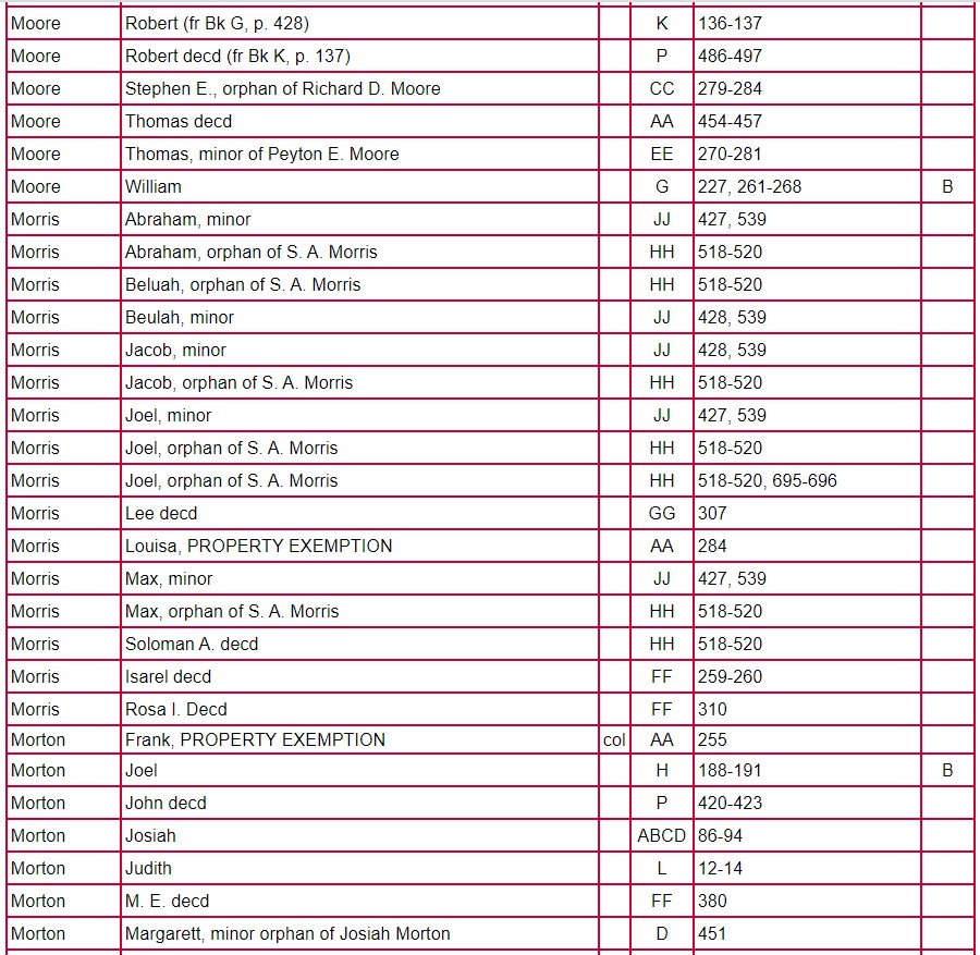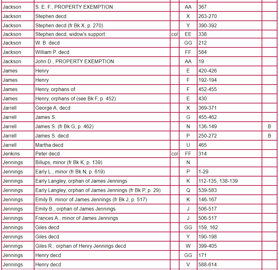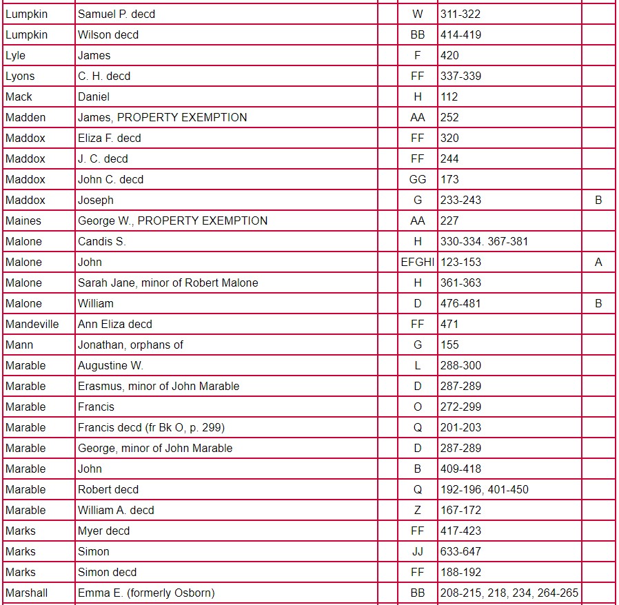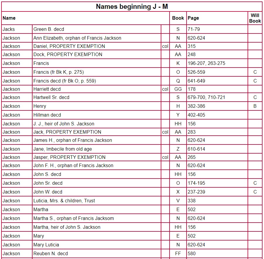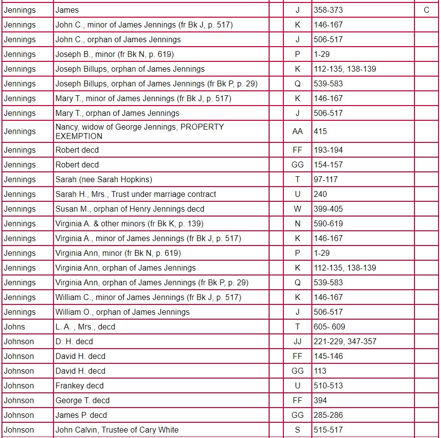 Index of Clarke County Returns and Mixed Records Books ABCD – JJ