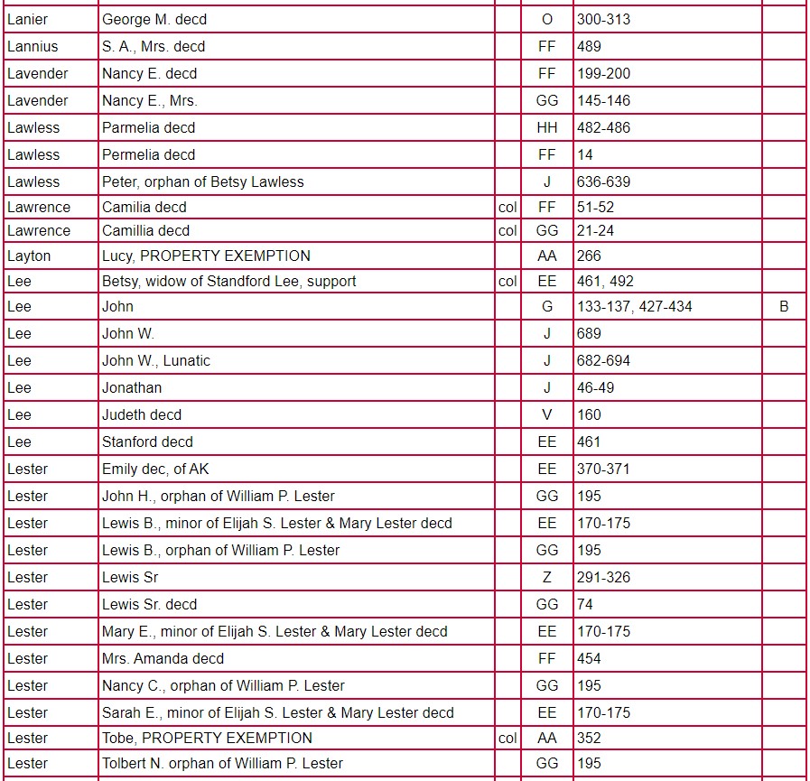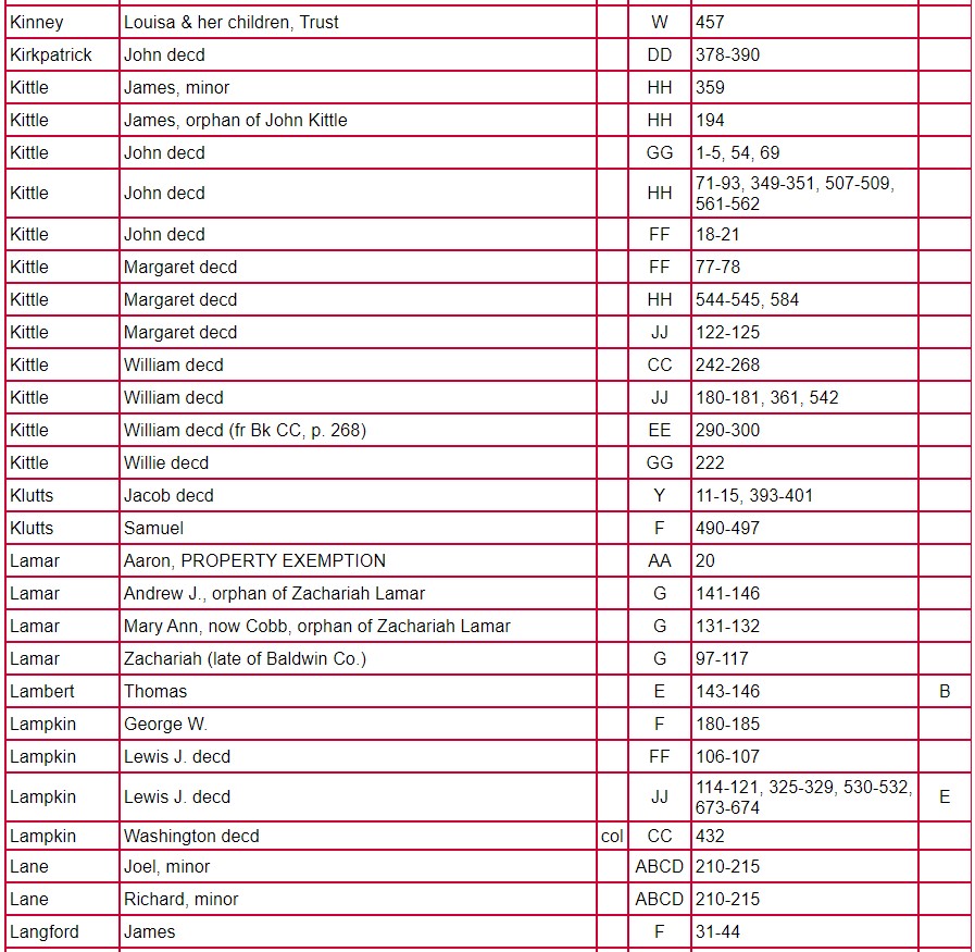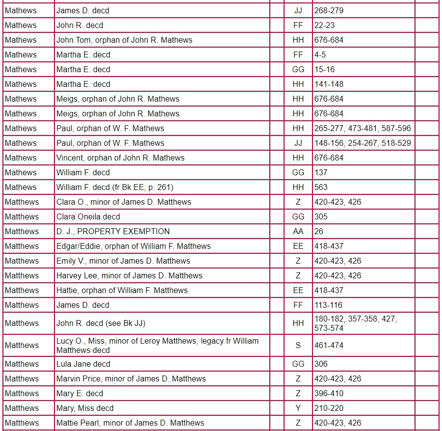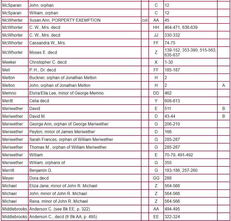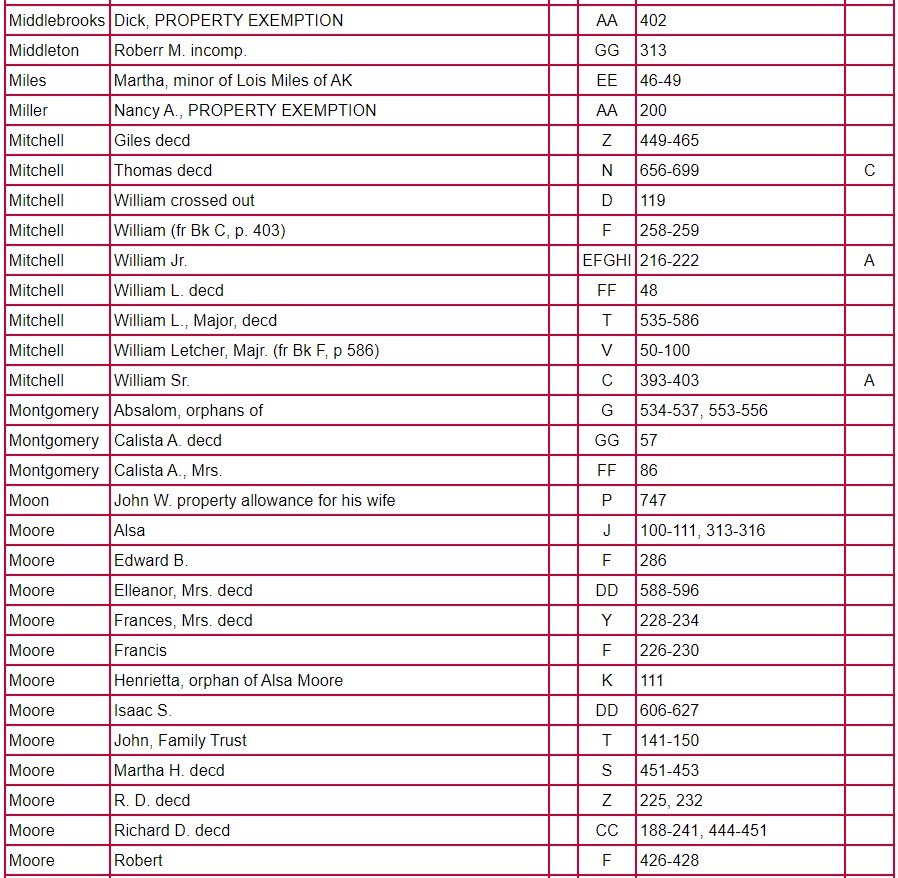 Index of Clarke County Returns and Mixed Records Books ABCD – JJ