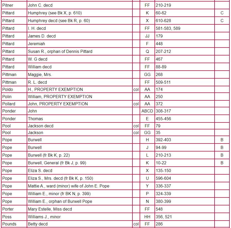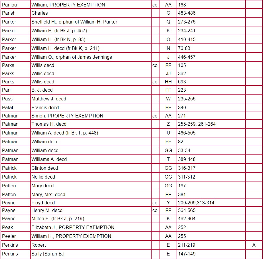 Index of Clarke County Returns and Mixed Records Books ABCD – JJ